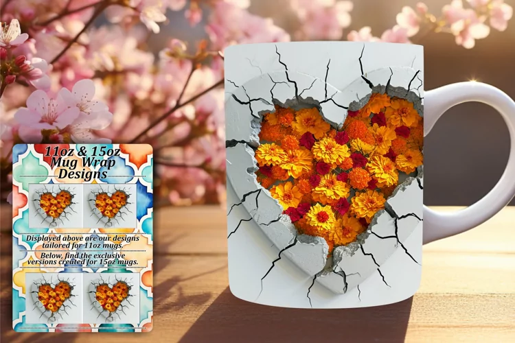 Coffee Cup Sublimation Design 11oz Mug Wrap 15oz Mug Wrap Valentines Mug Wrap 3d Mug Wrap 3d Hole In Wall Sublimation Glossy Sublimation 3d Heart Mug Wrap 3d Heart Sublimation Design