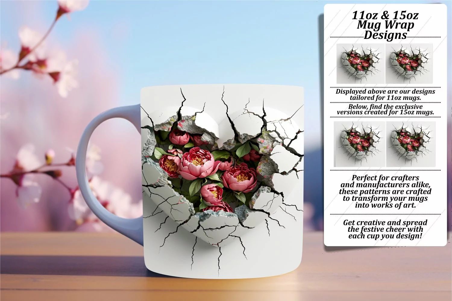 Coffee Cup Sublimation Design 11oz Mug Wrap 15oz Mug Wrap Valentines Mug Wrap 3d Mug Wrap 3d Hole In Wall Sublimation Glossy Sublimation 3d Heart Mug Wrap 3d Heart Sublimation Design