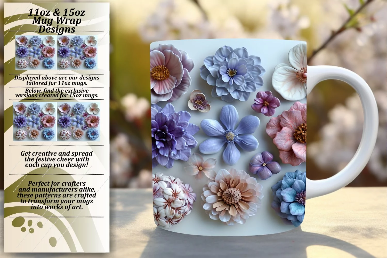 Flower Clipart Flower Pattern Coffee Mug Sublimation Design Flower Sublimation Design 3d Flower Design 15oz Mug Wrap Flower Mug Wrap Wedding Mug Wrap 3d Flower Pattern