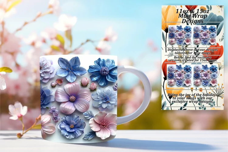 Flower Clipart Flower Pattern Coffee Mug Sublimation Design Flower Sublimation Design 3d Flower Design 15oz Mug Wrap Flower Mug Wrap Wedding Mug Wrap 3d Flower Pattern