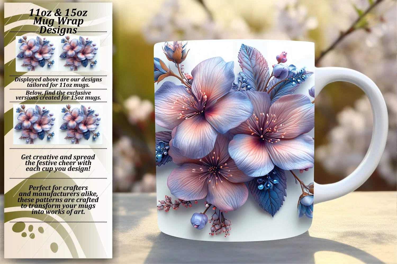 Flower Clipart Flower Pattern Coffee Mug Sublimation Design Flower Sublimation Design 3d Flower Design 15oz Mug Wrap Flower Mug Wrap Wedding Mug Wrap 3d Flower Pattern