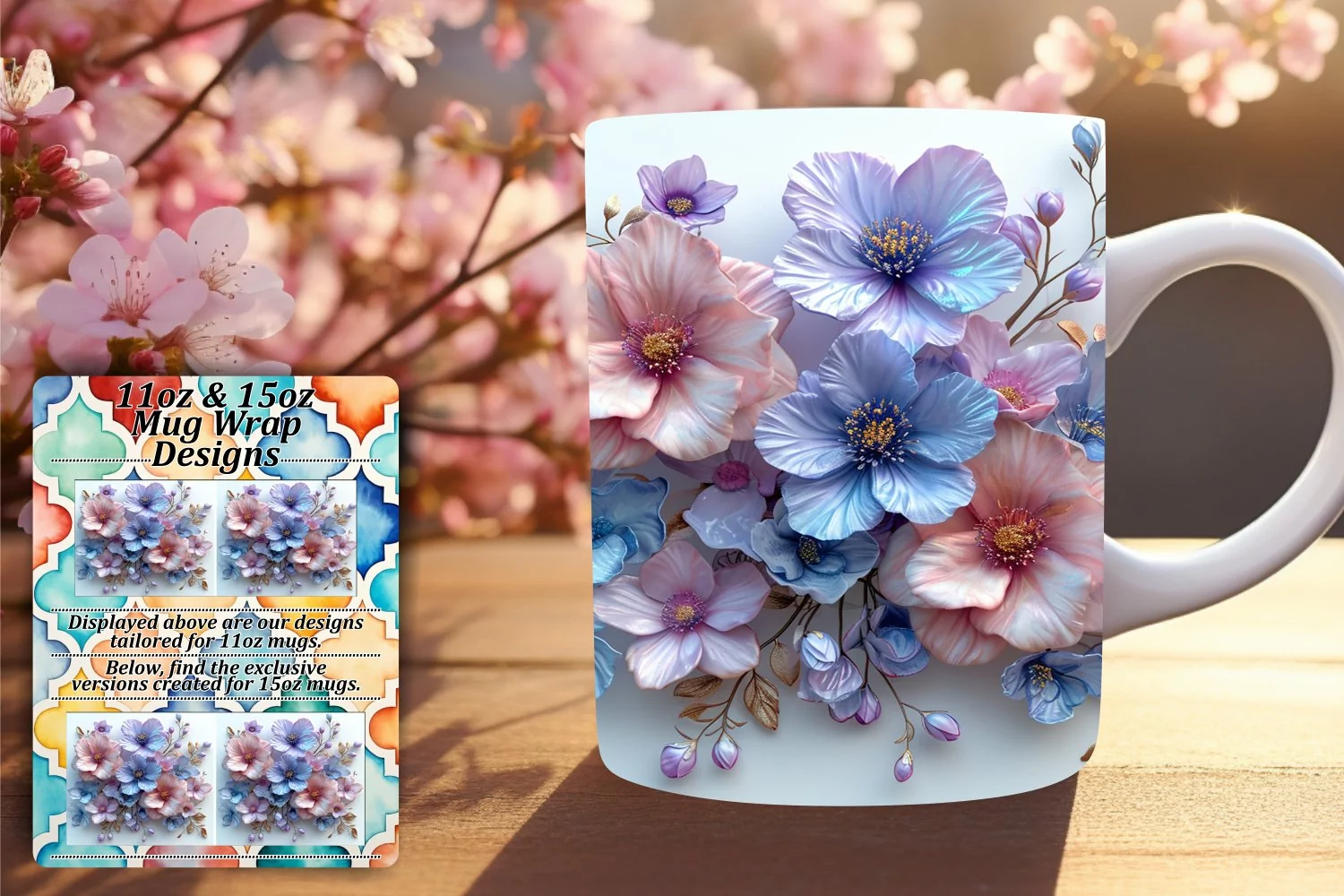 Flower Clipart Flower Pattern Coffee Mug Sublimation Design Flower Sublimation Design 3d Flower Design 15oz Mug Wrap Flower Mug Wrap Wedding Mug Wrap 3d Flower Pattern