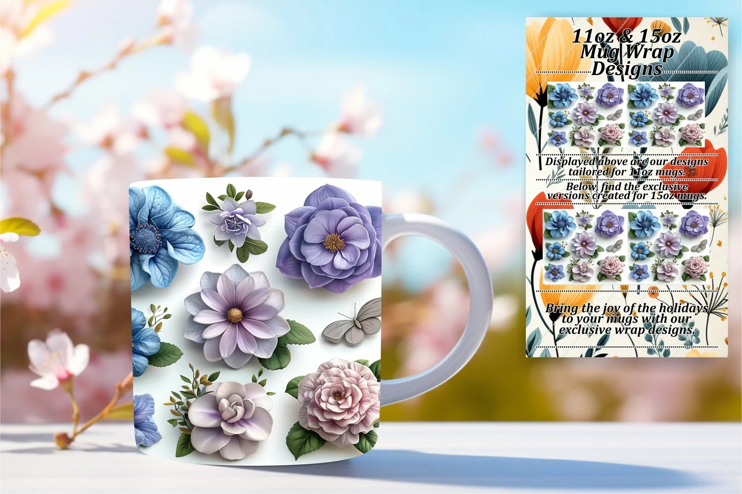 Flower Clipart Flower Pattern Coffee Mug Sublimation Design Flower Sublimation Design 3d Flower Design 15oz Mug Wrap Flower Mug Wrap Wedding Mug Wrap 3d Flower Pattern