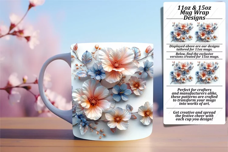 Flower Clipart Flower Pattern Coffee Mug Sublimation Design Flower Sublimation Design 3d Flower Design 15oz Mug Wrap Flower Mug Wrap Wedding Mug Wrap 3d Flower Pattern