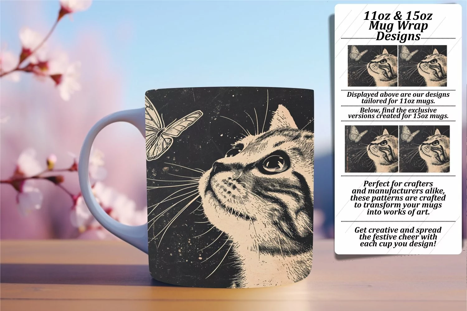 • PNG file for an 11oz mug, dimensions 8.5 x 3.5 inches, 300dpi.