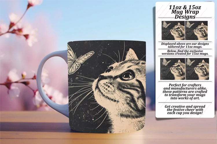 Vibrant Cat Mug Wrap: Sublime Sublimation