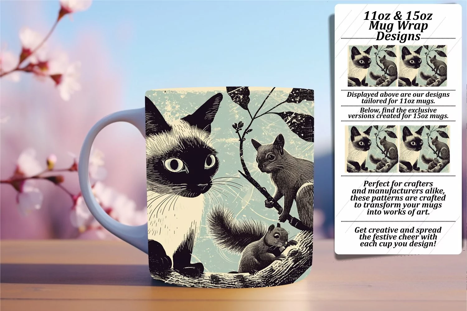 • PNG file for an 11oz mug, dimensions 8.5 x 3.5 inches, 300dpi.