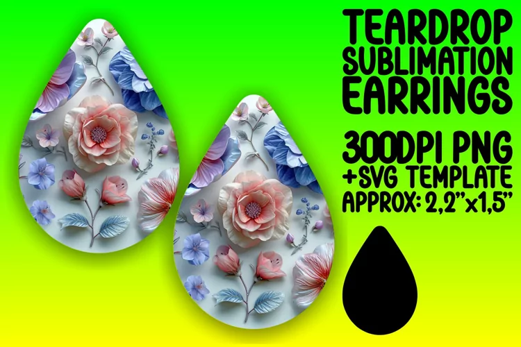 Sublimation Design Teardrop Earrings Teardrop Earring Png Teardrop Sublimation 3d Flower Earrings Teardrop Earring Sublimation Design 3d Earrings Sublimation 3d Flower Pattern Teardrp Earrings Template Flower Pattern Sublimation Design