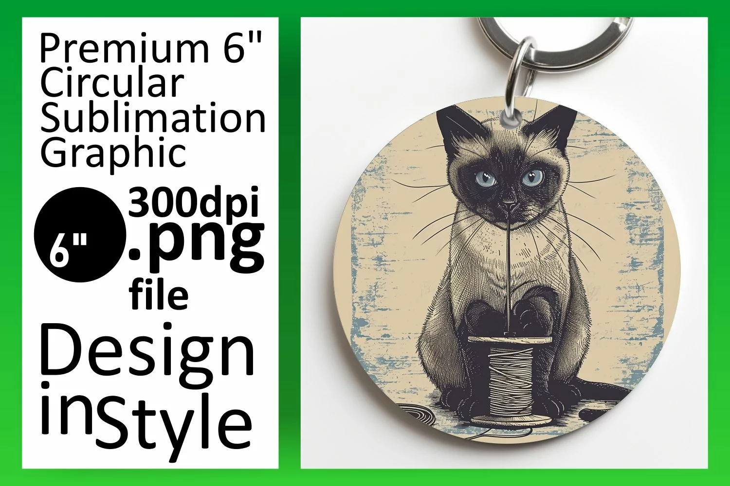 Playful Feline Design: Circle & Keychain Combo