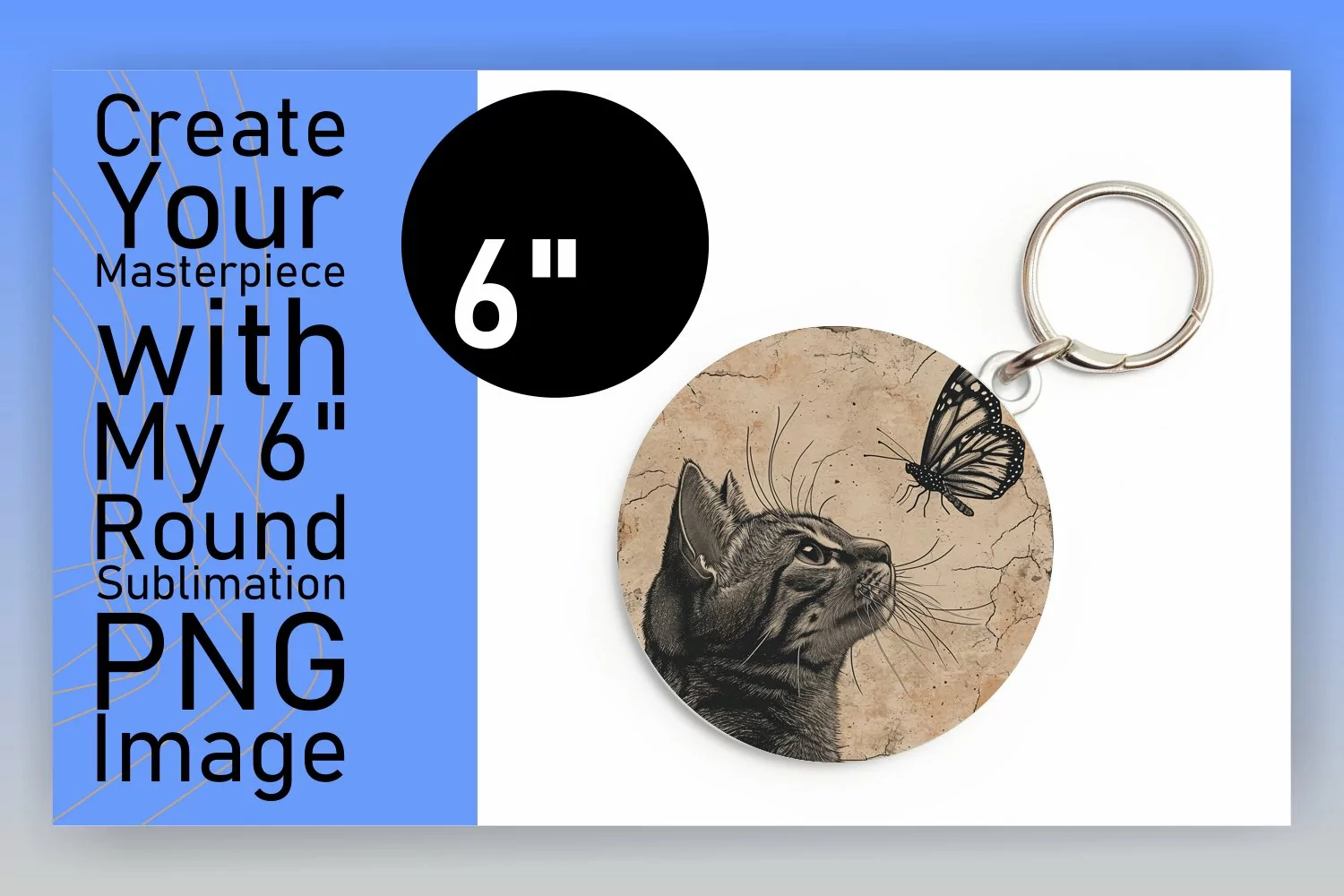 Joyful Cat Sublimation: Keychain & Coaster Design