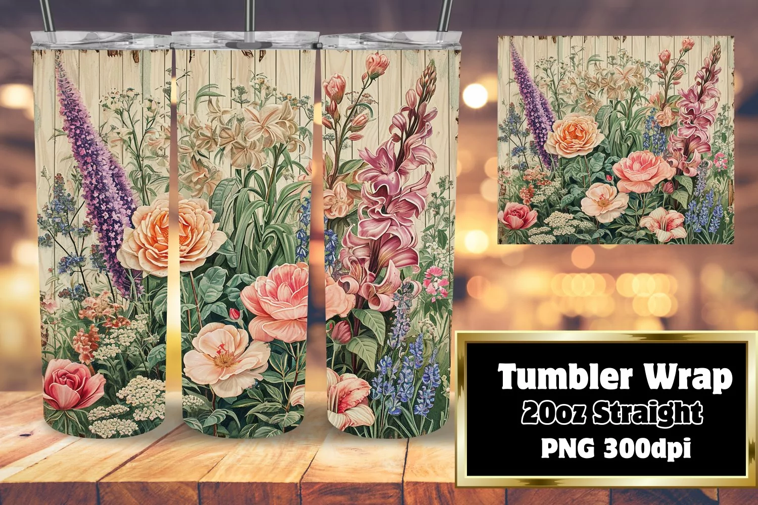 Retro Floral Design Tumbler Wrap - 20oz Beauty