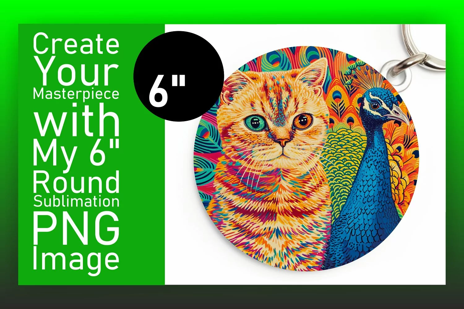Vibrant Cat Sublimation: Keychain & Coaster Selection