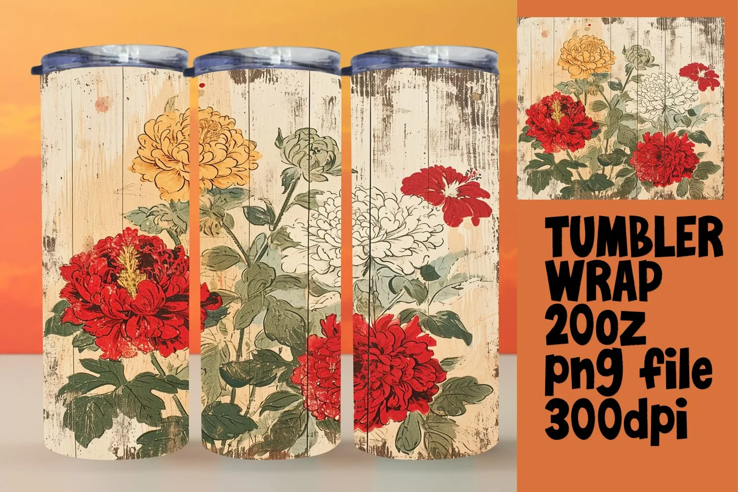 Retro Floral Design Tumbler Wrap - 20oz Wonder example image 1