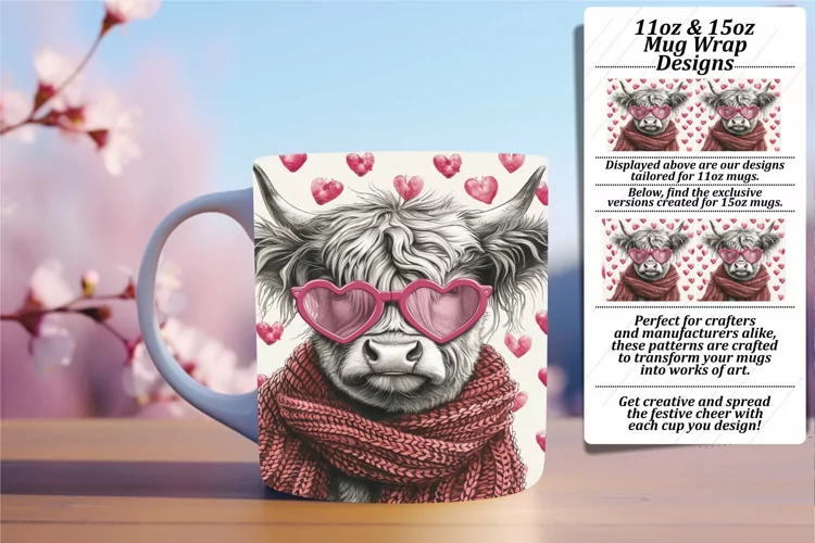 Coffee Mug Sublimation Design Cow Sublimation Design Farmhouse Png Highland Cow Png 15oz Mug Wrap Valentines Mug Wrap Love Cow Png Valentines Cow Png Cow Watercolor Png