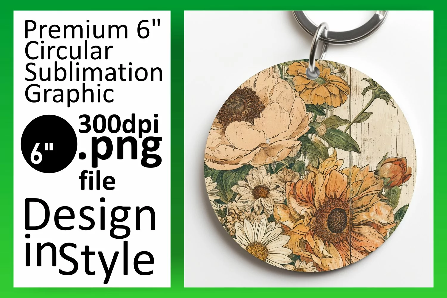 Similar Design Products to Vintage Floral Round Sublimation Keychain & Coaster