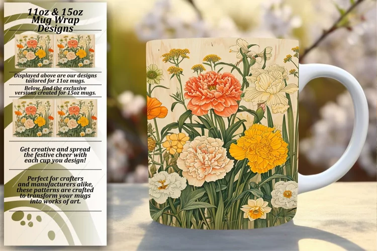Classic Vintage Floral Pattern Mug Wrap Design