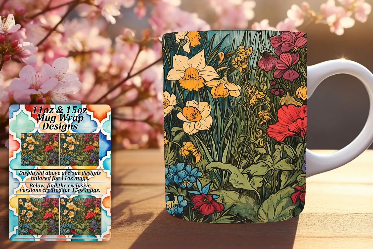 Floral Harmony Mug Wrap Design for Sublimation
