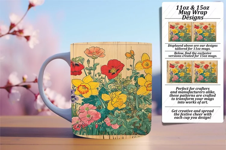Flower Clipart Flower Pattern Coffee Mug Sublimation Design Flower Sublimation Design Retro Flower Pattern 3d Flower Design 15oz Mug Wrap Flower Mug Wrap 3d Flower Pattern