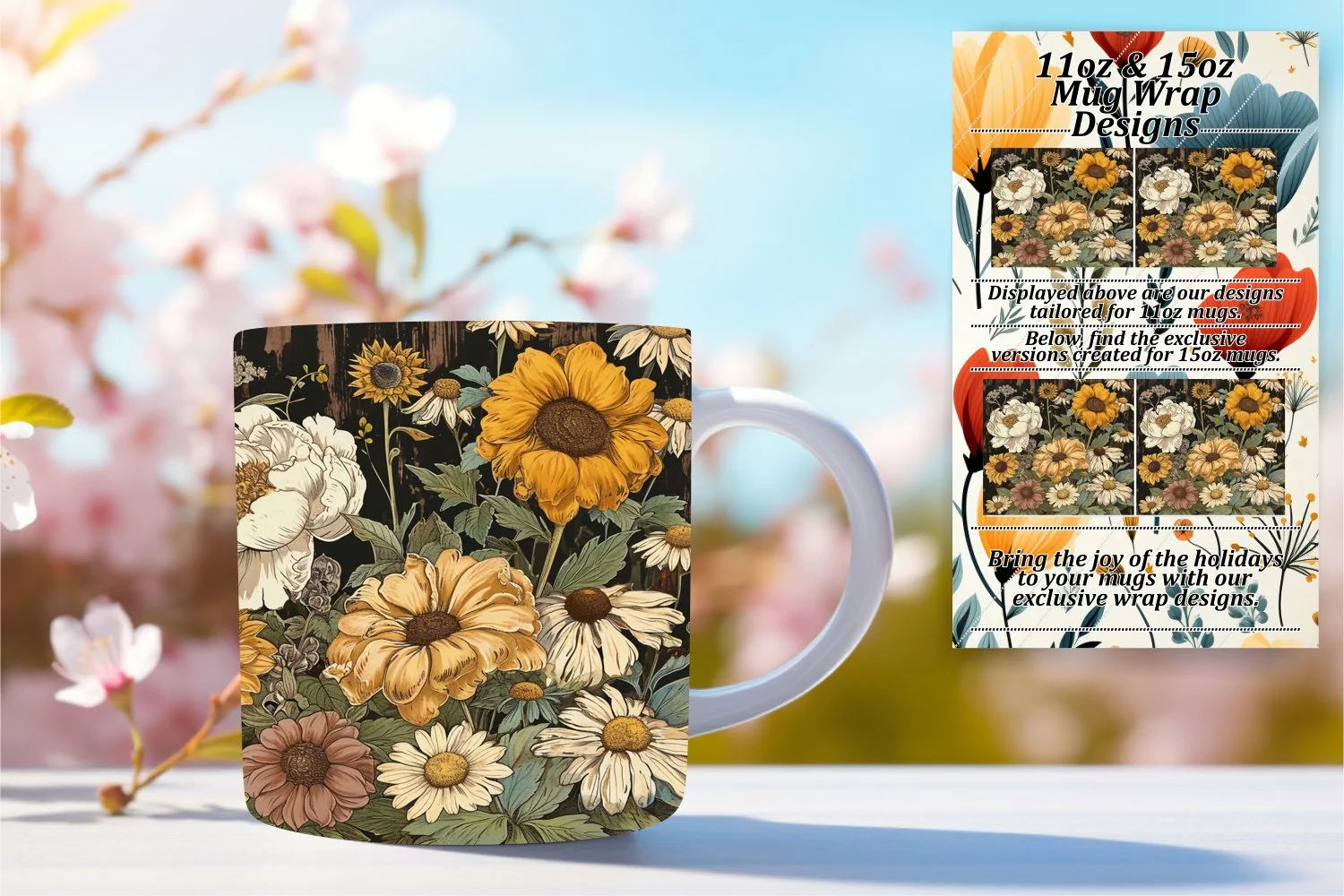 Flower Clipart Flower Pattern Coffee Mug Sublimation Design Flower Sublimation Design Retro Flower Pattern 3d Flower Design 15oz Mug Wrap Flower Mug Wrap 3d Flower Pattern