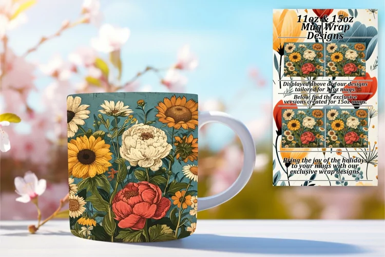 Whimsical Vintage Flower Pattern Mug Wrap 11oz