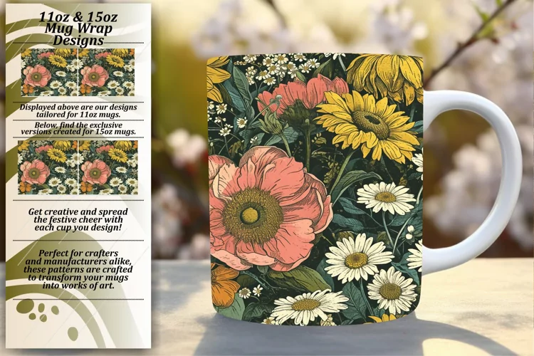 Flower Clipart Flower Pattern Coffee Mug Sublimation Design Flower Sublimation Design Retro Flower Pattern 3d Flower Design 15oz Mug Wrap Flower Mug Wrap 3d Flower Pattern