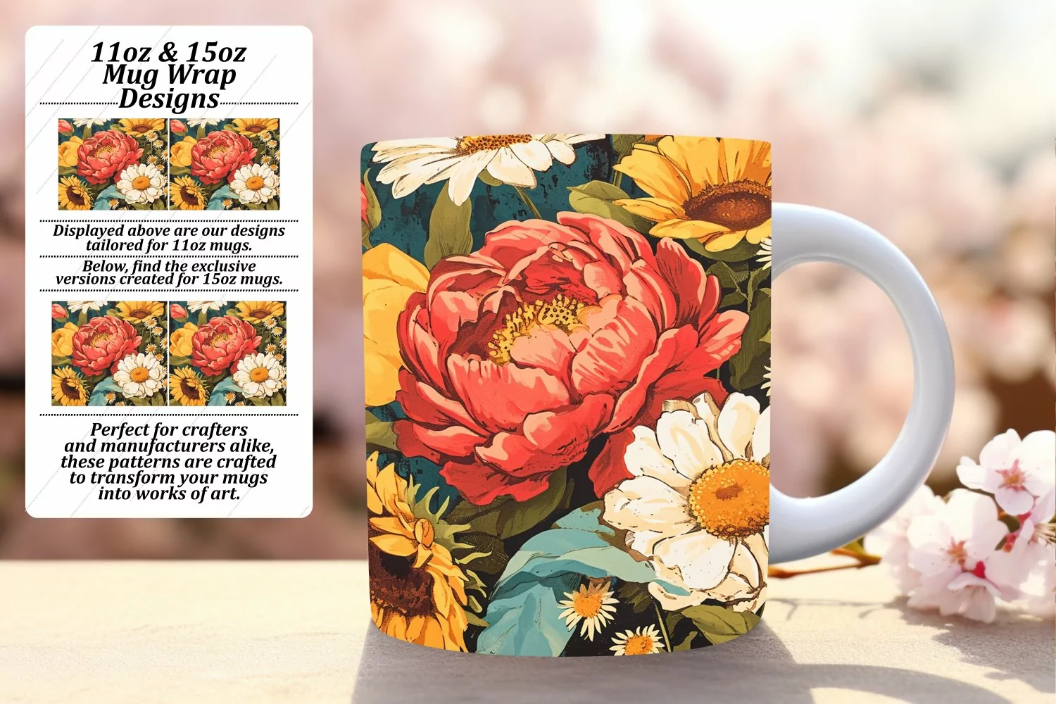 Timeless Floral Pattern Mug Wrap Sublimation 11oz
