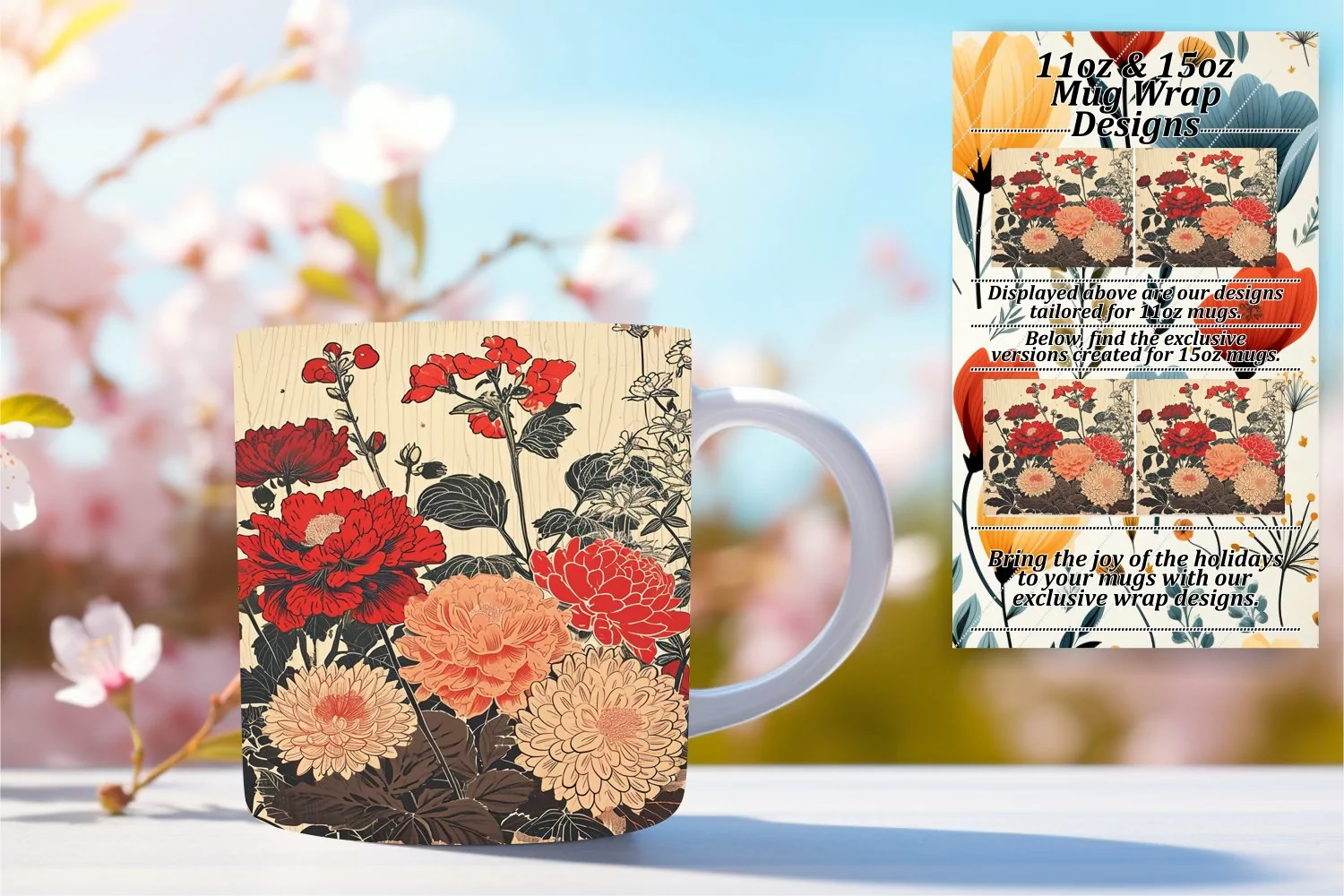 Whimsical Retro Spring Mug Wrap Design 15oz example image 1