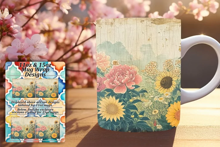Whimsical Vintage Flower Pattern Mug Wrap 15oz