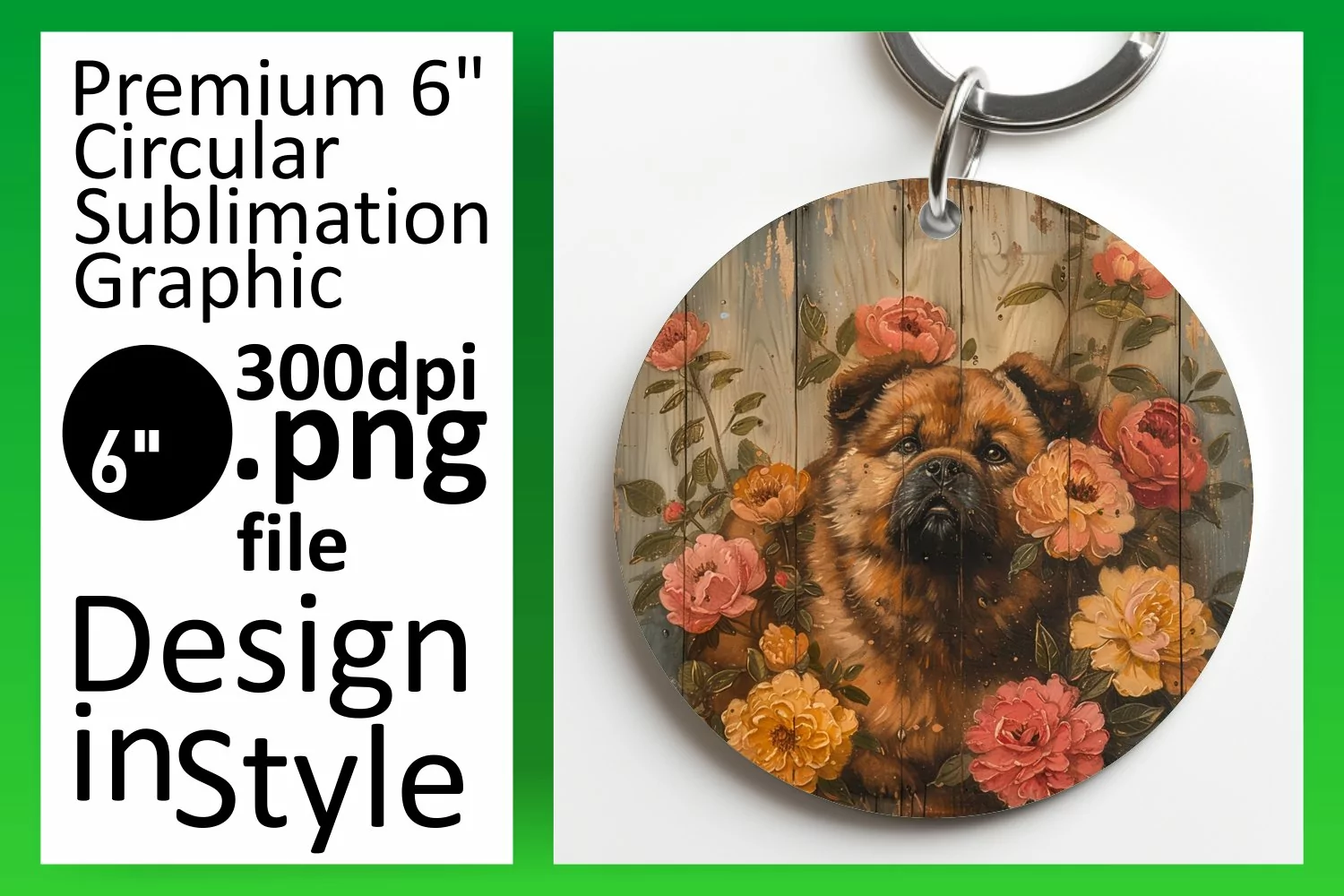 Round Ornaments Watercolor Dog Sublimation Design Sublimation Printing Flower Sublimation Car Coaster Dog Sublimation Design Keychain Sublimation Keychain Sublimation Design Dog Breeds Png