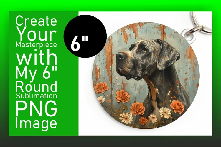 Round Ornaments Watercolor Dog Sublimation Design Sublimation Printing Flower Sublimation Car Coaster Dog Sublimation Design Keychain Sublimation Keychain Sublimation Design Dog Breeds Png