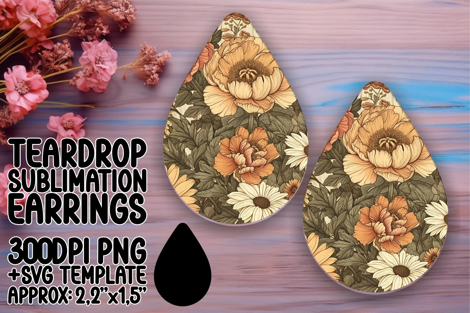 Elegant Floral Teardrop Earring Sublimation PNG example image 1