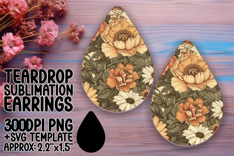 Similar Design Products to Elegant Floral Teardrop Earring Sublimation PNG