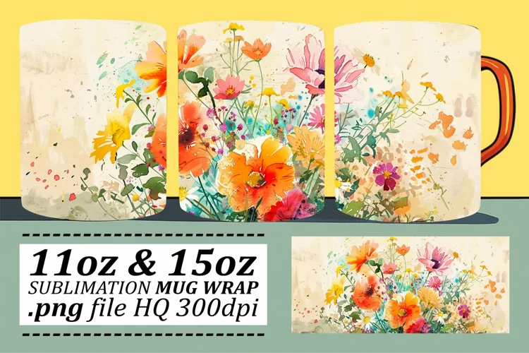 Spring Flower Mug Wrap - Floral Art 11oz 15oz example image 1