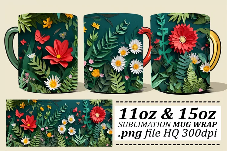 Spring Flower Mug Wrap - Elegant Pattern 11oz 15oz example image 1