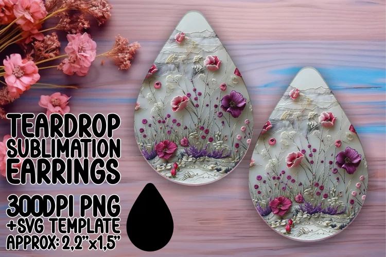 Flower Pattern Embroidery Pattern Sublimation Design Teardrop Earrings Embroidery Flower Teardrop Earring Png Teardrop Sublimation Teardrop Earring Sublimation Design 3d Earrings Sublimation Teardrp Earrings Template