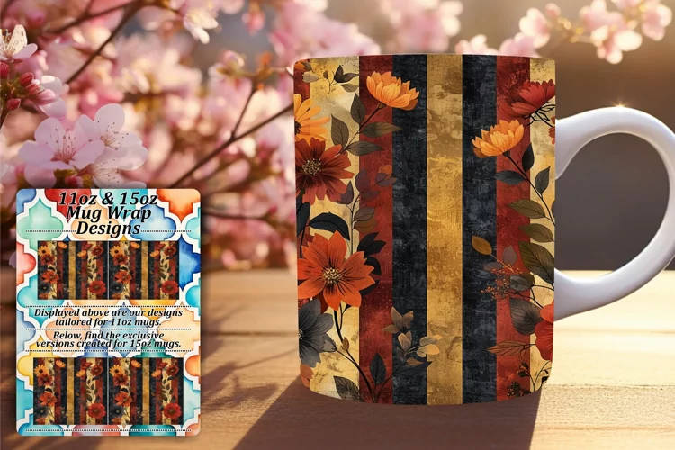 Spring Flower & Stripe Mug Wrap - Vibrant Elegance
