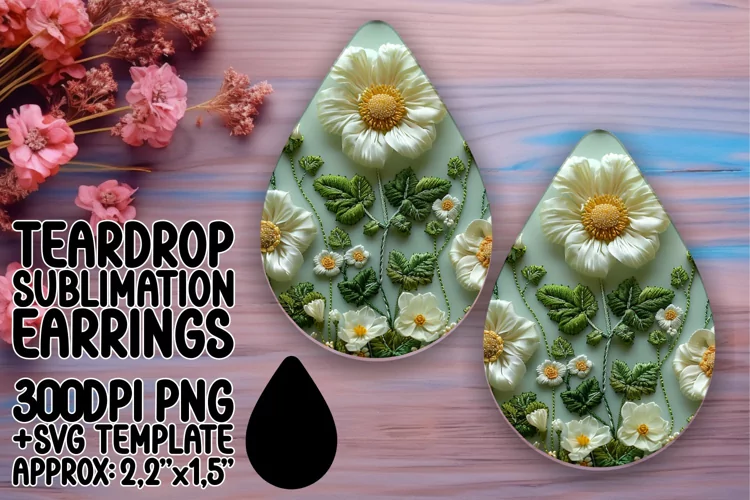 Flower Pattern Embroidery Pattern Sublimation Design Teardrop Earrings Embroidery Flower Teardrop Earring Png Teardrop Sublimation Teardrop Earring Sublimation Design 3d Earrings Sublimation Teardrp Earrings Template