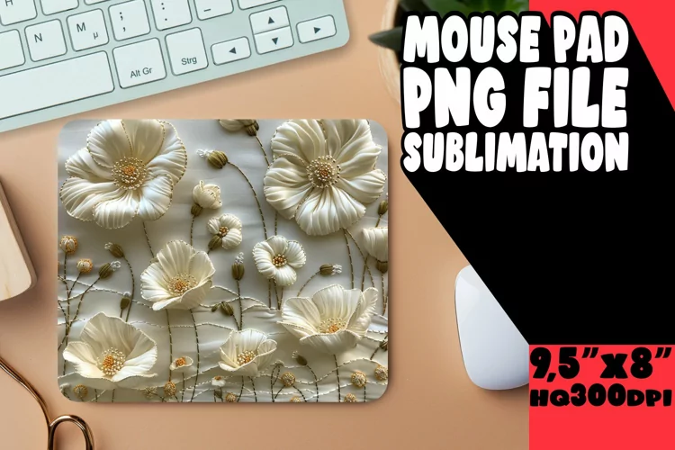 Mouse Pad Office Supplies Sublimation Design Sublimation Printing Spring Pattern Png Mouse Pad Design Mouse Mat 3d Flower Png Embroidered Floral Flower Mousepad Sublimation