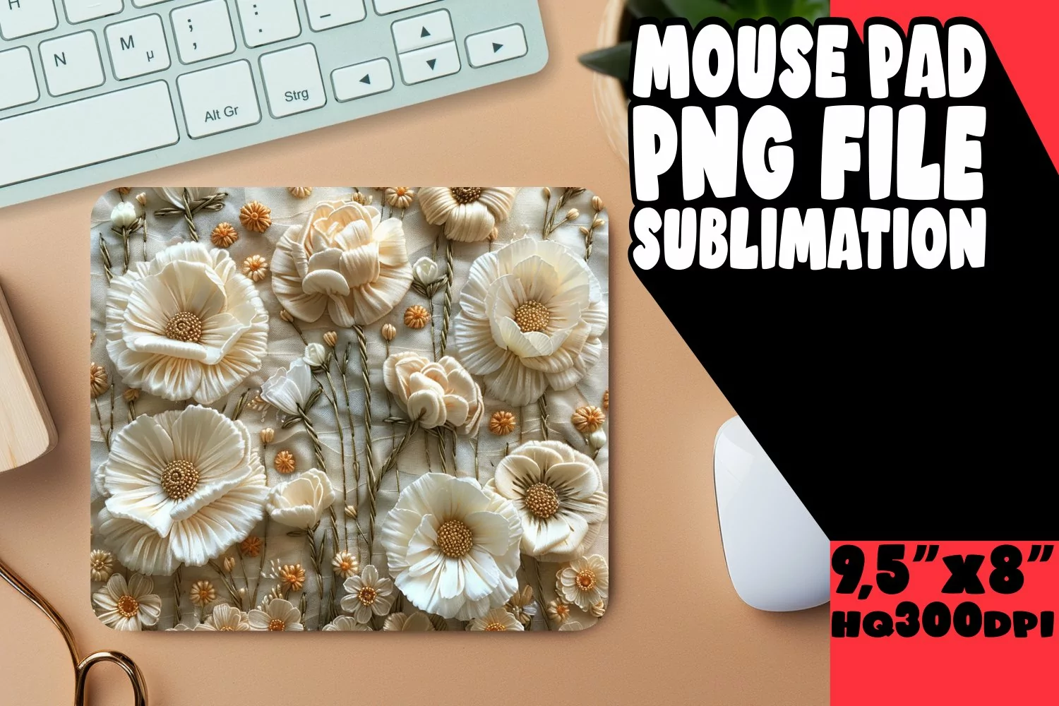 Mouse Pad Office Supplies Sublimation Design Sublimation Printing Spring Pattern Png Mouse Pad Design Mouse Mat 3d Flower Png Embroidered Floral Flower Mousepad Sublimation