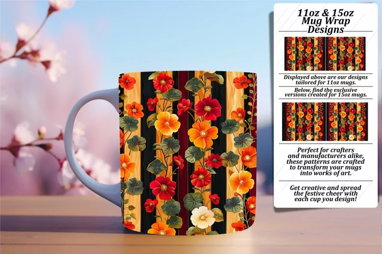 Flower Clipart Flower Pattern Coffee Mug Stripe Pattern Sublimation Design Flower Sublimation Design 3d Flower Design 15oz Mug Wrap Flower Mug Wrap 3d Flower Pattern