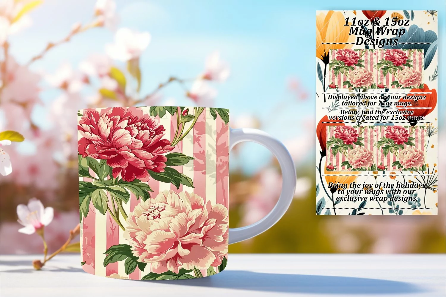 Floral Stripe Mug Wrap - Vibrant Spring example image 1