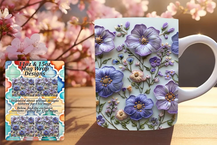 Flower Clipart Flower Pattern Coffee Mug Sublimation Design Flower Sublimation Design 3d Flower Design 15oz Mug Wrap Flower Mug Wrap Embroidered Flower 3d Flower Pattern