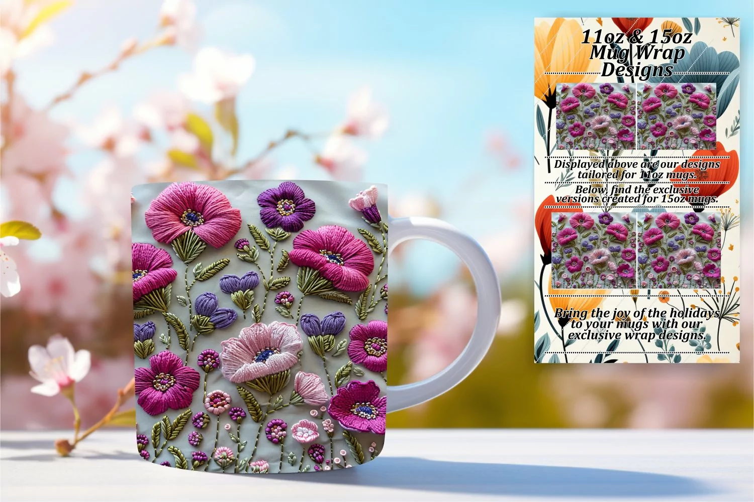 Whimsical Spring Blossom Mug Wrap - Sublimation 11oz 15oz