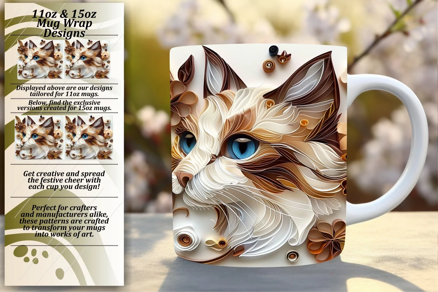 Feline Finesse: 3D Cat Mug Wrap - Sublimation 11oz/15oz example image 1