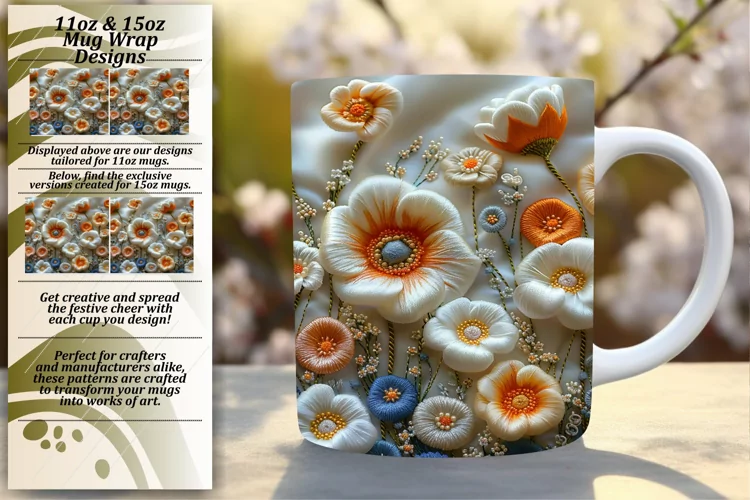 Flower Clipart Flower Pattern Coffee Mug Sublimation Design Flower Sublimation Design 3d Flower Design 15oz Mug Wrap Flower Mug Wrap Embroidered Flower 3d Flower Pattern