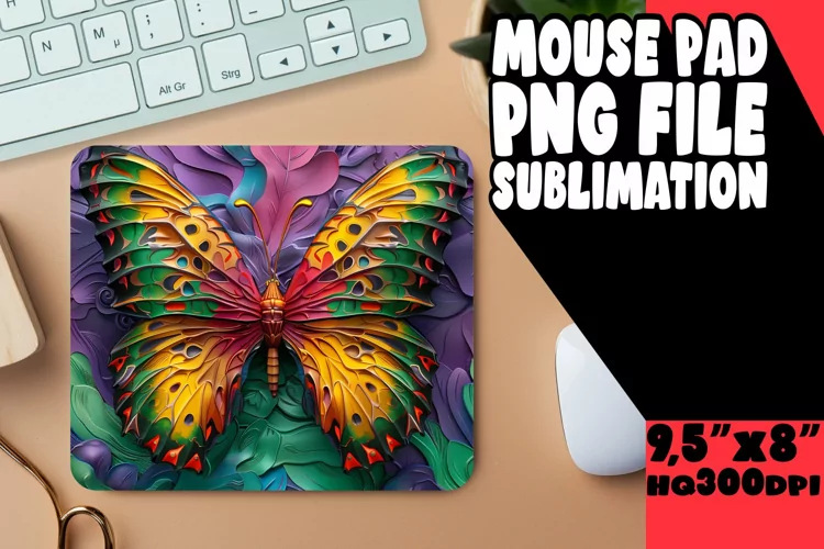 Butterfly Clipart Mouse Pad Office Supplies Sublimation Design Sublimation Printing Butterfly Sublimation Design Spring Sublimation Design Mouse Pad Design Mouse Mat 3d Butterfly Png