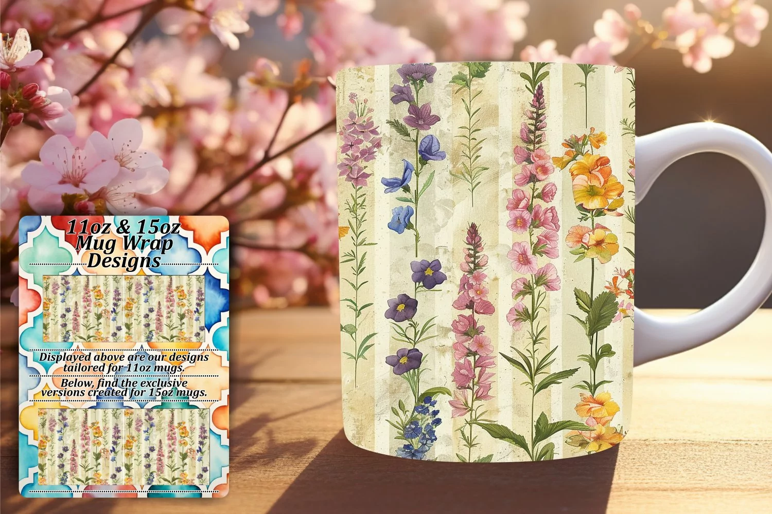 Floral Stripe Mug Wrap - Spring Delight example image 1