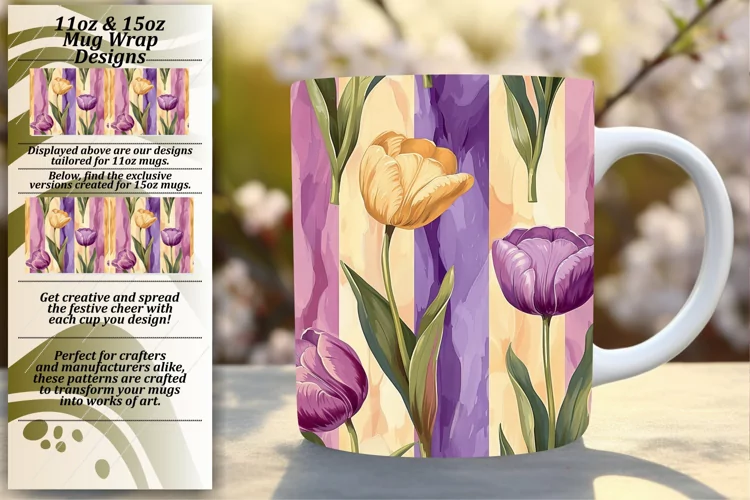 Floral Stripe Mug Wrap - Springtime Beauty example image 1