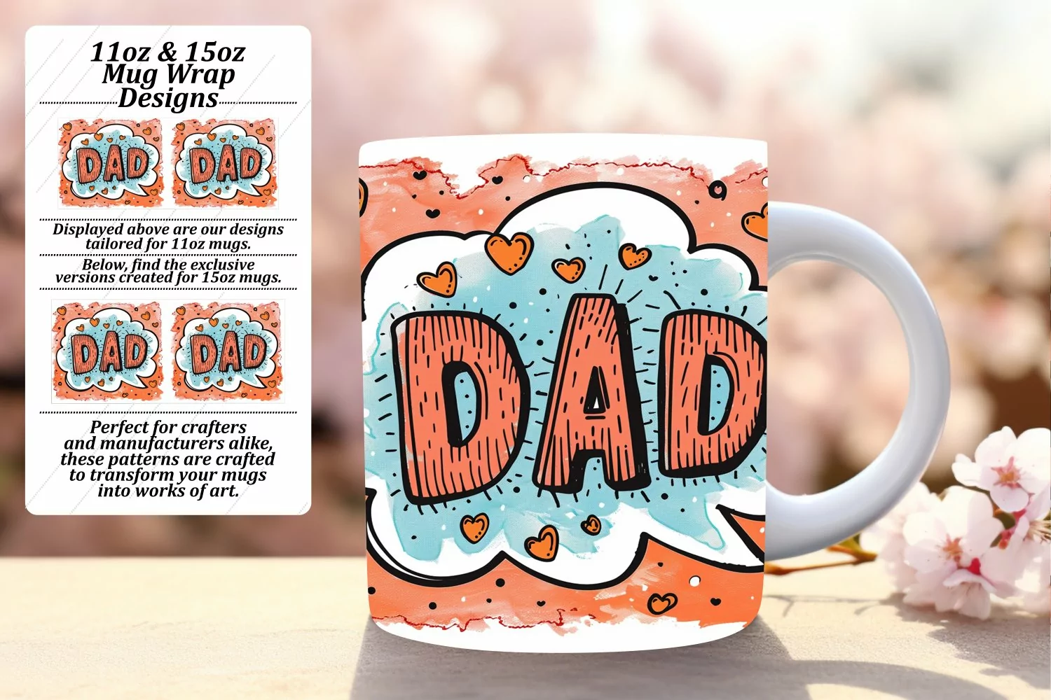 • PNG file for an 11oz mug, dimensions 8.5 x 3.5 inches, 300dpi.