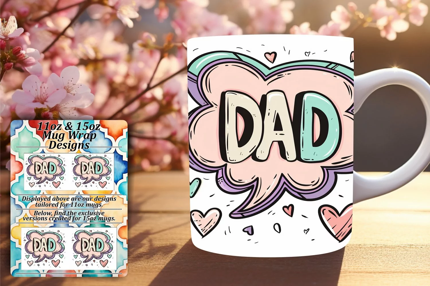 • PNG file for an 11oz mug, dimensions 8.5 x 3.5 inches, 300dpi.